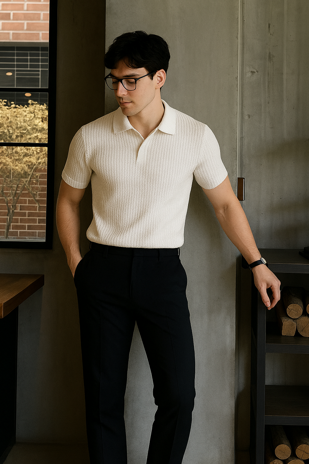 This knitted polo shirt with smart fit and bird eye collar offers a sleek and modern look. It is designed with a stretch fabric that provides a comfortable and flexible fit. The smart fit ensures a tailored silhouette, enhancing your overall appearance.